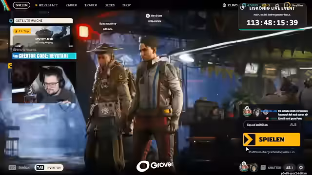 00:00:59Zu Beginn des Streams spielt Arc Raiders und teilt verschiedene Spielerfahrungen. Er erwähnt einen verpassten Kill und den Einsatz eines bestimmten Messers. Beim Erkunden stößt er auf interessante Details wie durch Wandschießende Wagen. Der Streamer beschreibt auch einen chaotischen Moment, bei dem er in eine Star-Wars-ähnliche Situation verwickelt wird, bei der er Gegner überfährt, aber keine Kills dafür erhält. Die Beleuchtung im Spiel wird positiv als entspannend bewertet.