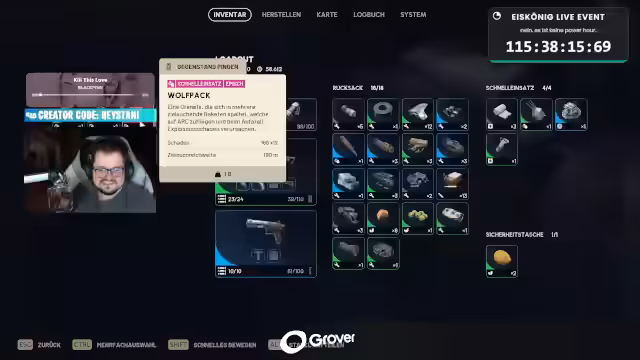 04:38:33Ein zentraler Aspekt des Streams ist das konstante Inventar-Management. Spieler müssen ständig entscheiden, was sie aufheben und was sie zurücklassen müssen, da der Ruckschnell voll ist. Das Looten von Containern ist zeitaufwendig, aber notwendig, um Ressourcen zu sammeln. Es wird betont, dass 90% der Zeit mit Looten verbracht werden.