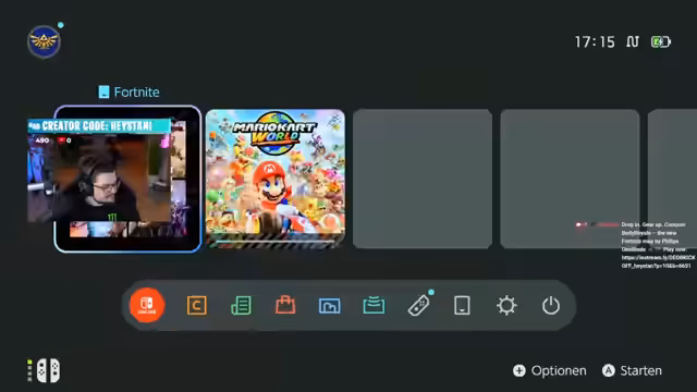 05:28:56Nachdem der schnelle Download von Fortnite abgeschlossen ist, werden die ersten Eindrücke im Spiel getestet. Die Grafik wird im angedockten Modus auf einem 4K-Fernseher als nicht scharf und verschwommen, insbesondere bei der Schrift, empfunden. Das Streamer ist frustriert, weil die Mausfunktion für den Shooter laut aktueller Information erst mit einem kommenden Patch im Juni verfügbar sein wird und somit vorerst nicht getestet werden kann. Trotzdem wird der Livestream für weitere Teste mit Fortnite und geplanten Community-Runden in Mario Kart World angekündigt.