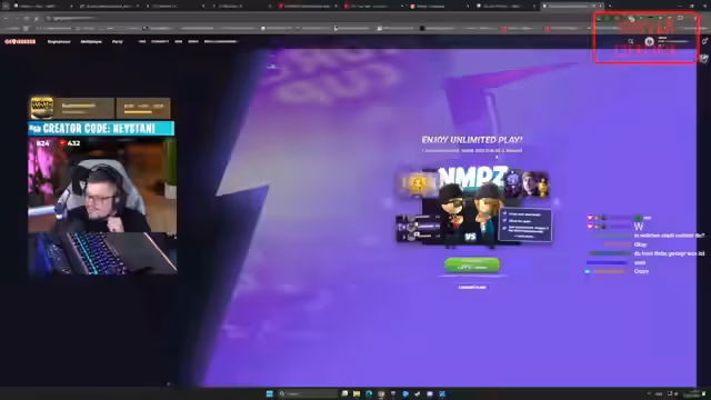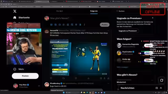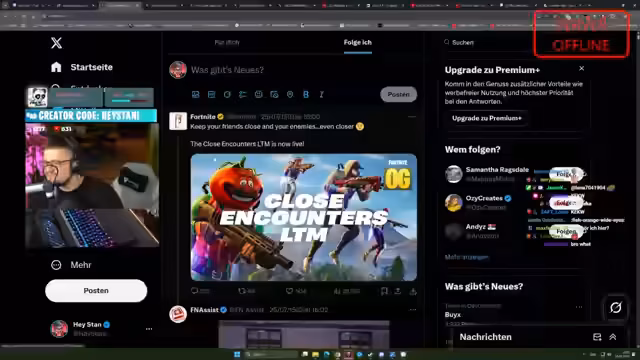 09:53:27Das angekündigte YouTube-Video zum XXL-Update wurde veröffentlicht und im Stream als Hintergrund angezeigt. Kurz darauf meldeten sich jedoch massive Serverprobleme in Fortnite an, was zu einer langen Downtime führte. Trotz der technischen Schwierigkeiten nutzte Streamer die Wartezeit, um mit der Community über aktuelle Events wie den Rocket League-Vorteil und neue Skins zu sprechen und um Support für den Creator-Code zu bitten.