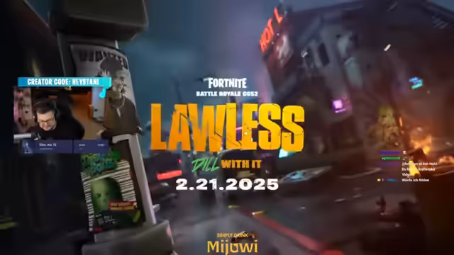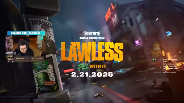 01:11:21Während des Streams wird der erste offizielle Teaser für Fortnite Season 2 gezeigt. Das Theme lautet 'Lawless' (gesetzlos) und zeigt eine zerstörte Welt, inspiriert von GTA, mit brennenden Mülltonnen und Geldtransportern. Die beiden Battle Pass-Sins, Gurki mit einer großen Gurke und Midas, der zurückkehrt und eine edlere, gangsterhafte Aura hat, werden vorgestellt. Das verspricht einen Fokus auf Gangster-Themen und Raubüberfälle, ähnlich wie in GTA 6, was die Community begeistert.