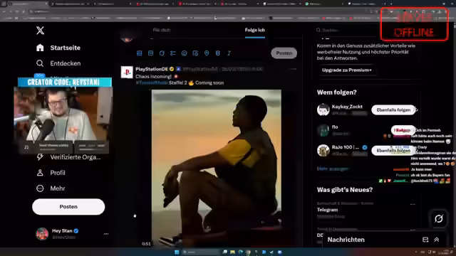 09:11:42Stan bezieht sich auf eine kürzlich erfolgte Veröffentlichung seines OnlyFans-Accounts und betont, dass er dies mit Respekt und Diskretion gegenüber seinen Followern handelt. Er äußert, dass er niemanden bloßstellen würde und die Kontonutzung als etwas Normales ansieht. Anschließend wechselt er wieder zum Gaming-Thema und ruft die Zuschauer auf, ihm bei der Monsterjagd in Apex Legends zu helfen.