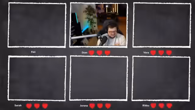 06:38:34Nach Abschluss der drei Runden des Wissensspiels fand eine Abstimmung statt, um zu ermitteln, wer in der Runde das 'dümmste' Bild abgegeben hatte. Jeder Teilnehmer wurde gebeten, auf einem Zettel aufzuschreiben, wen er für den Verlust eines Herzens nominiert. Anschließend wurden die Ergebnisse gleichzeitig gezeigt. Jorina erhielt in der Abstimmung die meisten Stimmen und verlor somit ein Herz. Der Streamer kommentierte humorvoll, dass dies bereits zum zweiten Mal passierte, und versuchte, die Stimmung mit Späßen aufzulockern.