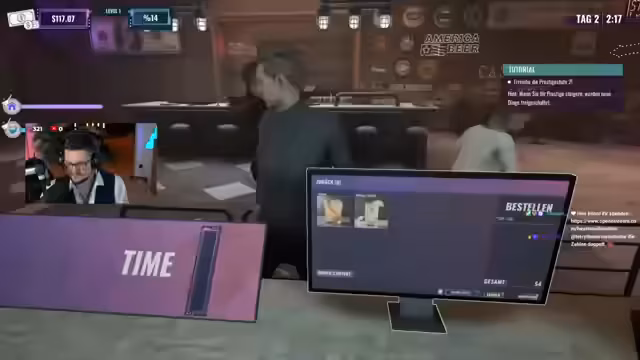 01:23:39Der Stream beginnt mit der Eröffnung eines neuen Nachtclubs namens Karnisch. Bereits kurz nach der Öffnung treten erste Herausforderungen auf, wie eine Schlange, die sich nicht bewegt, und Kunden, die mit zu wenig Kleingeld bezahlen. Der Streamer, der als Barkeeper agiert, ist schnell überfordert und muss gleichzeitig mixen, abrechnen und die Gäste bedienen. Die anfängliche Stimmung ist angespannt, und die ersten Beschwerden der Kunden, insbesondere über falsche Lieferungen, häufen sich.