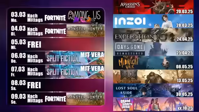 03:46:38Am Ende des Streams bewertet der Streamer 'Glitch Fiction' sehr positiv und sieht es als einen starken Kandidaten für das Spiel des Jahres. Er lobt den Plot und die Darstellung der Charaktere, insbesondere der Protagonistin Vera. Gleichzeitig wird auf die hohe Qualität der aktuellen Spieleveröffentlichungen hingewiesen, darunter 'Kingdom Come', 'Monster Hunter Wilds' und 'Split Fiction'. Die Abschaltung des Chats signalisiert das Ende der gemeinsamen Session.