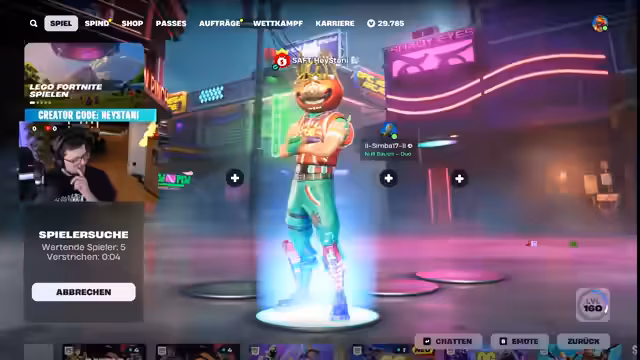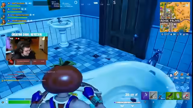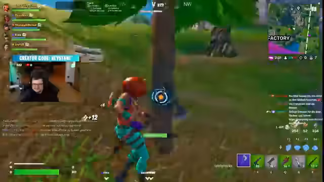 03:03:13Der Stream kehrt zum Gameplay zurück, das von chaotischen und actionreichen Momenten in Fortnite geprägt ist. Streamer landet an Orten mit hoher Dichte und gerät oft in Feuergefechte. Er sammelt Kills, wird aber auch selbst attackiert und verliert dabei wertvolle Ausrüstung. Die Runde ist eine Mischung aus strategischem Vorgehen, Baukunst und hektischem Überlebenskampf, das mit einem Sieg durch Bonk endet.