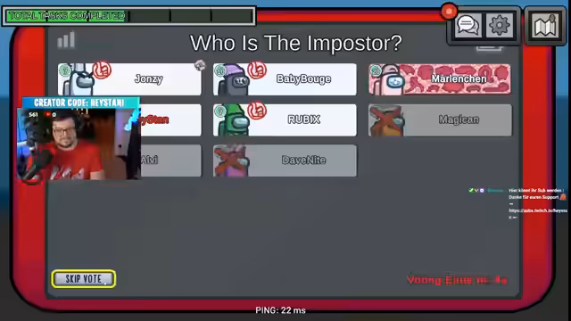 04:44:09Im Verlauf des Streams werden mehrere Todesfälle im Sicherheitsbereich gemeldet. Der Streamer untersucht die Umstände und beobachtet verdächtige Aktivitäten. Er stellt fest, dass Dave tot aufgefunden wurde und selbst einen frischen Kill in Security vermutet, da er eine gewandete Person sah, als die Tür geschlossen war. Dies führt zu Spekulationen über die Identität des Imposters, wobei Marlenchen und Alvi verdächtigt werden. Die unübersichtliche Lage und die gespiegelte Map erschweren die Analyse der Vorfürfnisse.