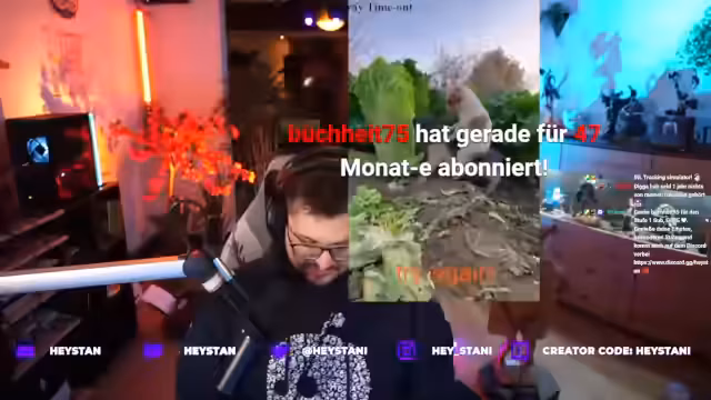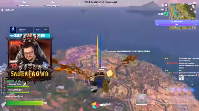 00:00:00Der Stream beginnt mit intensivem Fortnite-Gameplay, wo der Streamer mehrere erfolgreiche Plays und Kills zelebriert, darunter einen 'gottgleichen' Play und den Erhalt eines neuen Spitznamens 'Kartoffelsack'. Es folgen Diskussionen über den aktuellen Spielstand, wobei auf die erwartete Erwirtschaftung von 50er Subbombs und den Kampf gegen vorletzte Bosse eingegangen wird. Die Stimmung ist euphorisch, begleitet von Live-Kommentaren zu den Spielverläufen und einem gemeinsamen 'Let’s go'-Ruf für den anstehenden Großevent.