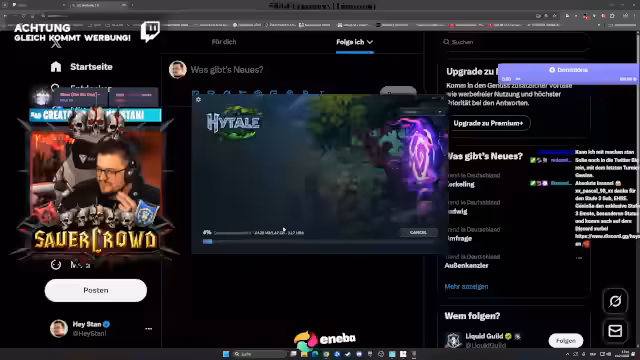 00:23:24Der Fokus verschiebt sich auf technische Herausforderungen. Es kommt zu Fehlern beim Download des Hytale-Launchers, der Download-Speed ist als „Grütze“ beschrieben, und es tauchen Fehlermeldungen auf. Diese Problematik wird im Kontext der erwarteten Serverüberlastung um 16 Uhr besprochen. Zudem werden organisatorische Fragen zur Nachreichung von Gewinnprämien (Trophäen) und abgeschlossenen Verlosungen thematisiert, wobei angekündigt wird, dass die Zeit für Nachreichungen abläuft.