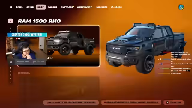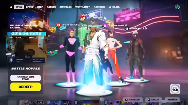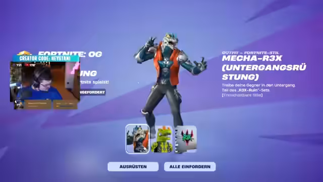 09:48:50Am Anfang des Streamings erzielt der Kanalbesitzer Level 20 in Fortnite und holt sich kostenlose Items durch einen einlösbaren Code. Valorant wird als zu "sweaty" eingestuft, weshalb sich der Fokus auf das als casualiger empfundene Spiel Fragpunk verlagert. Danach werden Fortnite-Anhänger genauer angesehen, darunter eine zufällig erhaltene Gurke und ein epischer Kill-Counter. Der Streamer stellt fest, dass Fortnite viele verkaufbare Gegenstände verloren hat, was eine verpasste Chance darstellt.