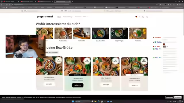 03:33:29Der Streamer stellt den Meal-Kit-Anbieter PrepMyMeal vor und spricht über seine positive Erfahrung damit. Er beschreibt die Produkte als frisch gekocht, schockgefroren und einfach zuzubereiten. Für Streamer sei dies eine praktische Lösung, da sie nicht selbst kochen oder das Haus verlassen müssen. Er empfiehlt PrepMyMeal als Zwischenlösung zwischen selbst kochen und Fertigessen und hebt die Qualität und den Geschmack der Gerichte hervor.
