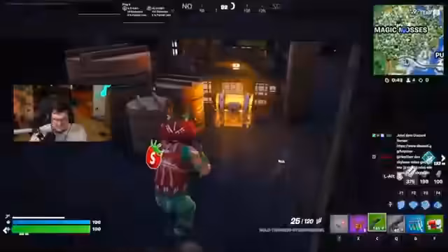 01:42:28Für die finale Herausforderung benötigt jedes Teammitglied eine Teleportmaske, zwei Medkits und 500 Holz. Da das Beschaffen der Masken schwierig ist, wird ein Bot als alternatives Kaufziel ins Auge gefasst. Nachdem alle Ausrüstung gesammelt ist, bittet der Streamer die Spieler, ihre Steuerungselemente im Menü zu entbinden, sodass sie sich nur noch mit der Teleportmaske fortbewegen können. Das Spiel beginnt, aber es sofort zu gewinnen ist schwierig.