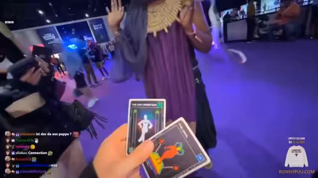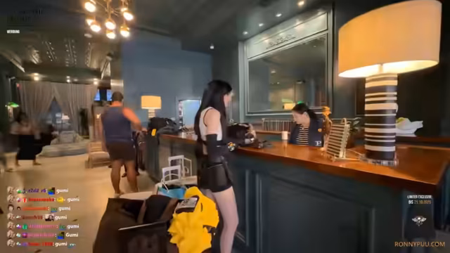 01:51:51Die Ankunft auf der TwitchCon ist von technischen Problemen überschattet. Die Aufzüge im Hotel funktionieren nur sehr langsam oder gar nicht, was die Anreise zur Messe erschwert. Die Streamer müssen mit schweren Gepäckstücken die Treppe benutzen. Währenddessen wird auch die Tifa-Cosplay-Perücke und das dazugehörige Outfit getestet. Es gibt technische Probleme mit der Internetverbindung und dem mobilen Router, der das Chat-Verhalten beeinflusst. Es wird die Frage aufgeworfen, ob jemand den Nachnamen der Streamerin kennt, und es gibt eine kurze Diskussion über den Einsatz von Kameras.