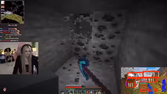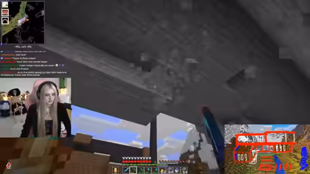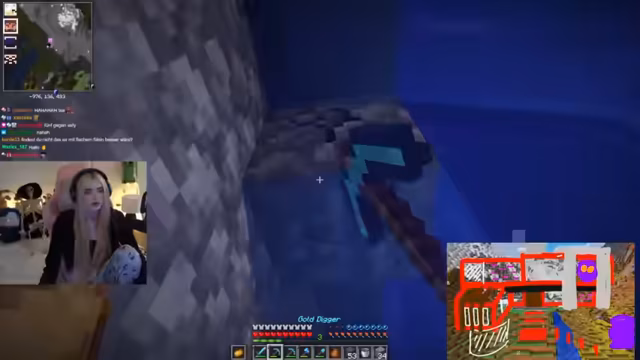 08:54:55Die Streamerin findet sich allein im Wasser wieder, während Rose auf einer Dschungelinsel ist. Sie bewundert die Schönheit der Korallen und entdeckt ein Skelettpferd. Die Streamerin beschließt, eine Erkundungstour zu machen, um etwas Cooles zu finden, vermutet aber, dass in ihrer Nähe bereits alles erkundet wurde. Sie findet viele Schiffswracks und hofft, eine Mansion zu finden, die sich oft in Biomen mit vielen Pilzbäumen befindet. Während einer Unterwassererkundung wird erklärt, wie man unter Wasser atmen kann, indem man kleine Lufthöhlen baut und Magma-Blöcke nutzt, um die Sauerstoffanzeige aufzufüllen. Diese Methode ermöglicht es, tief unter Wasser nach Diamanten zu suchen, da diese dort häufiger spawnen, wo Blöcke keinen Zugang zu Luft haben. Die Gruppe findet tatsächlich Diamanten und eine Höhle, die sich als Lush Cave entpuppt. Die Streamerin freut sich über die Schönheit der Höhle und die gefundenen Diamanten.