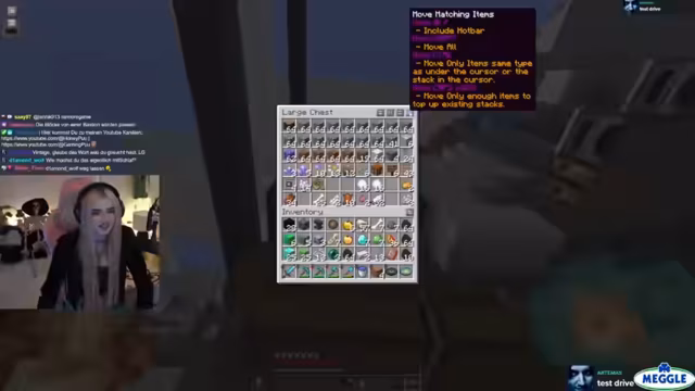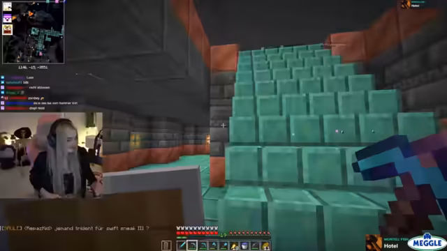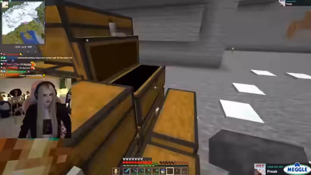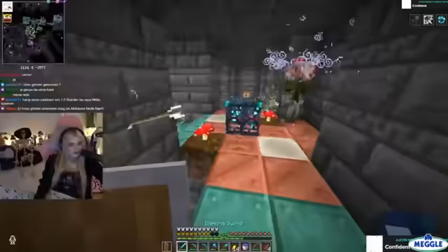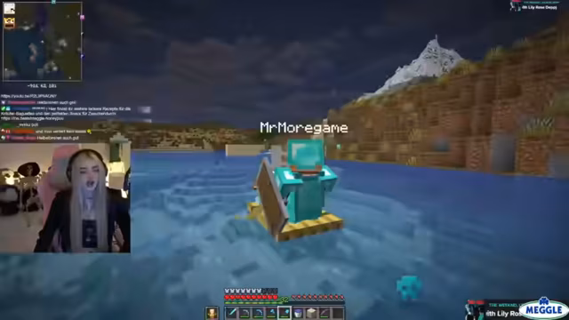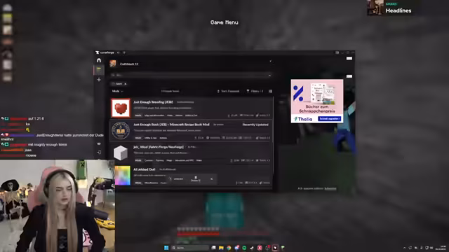 00:39:03Nach dem Boot-Prank konzentriert sich die Streamerin auf die Verbesserung ihrer Ausrüstung. Sie repariert ihre Axt und versucht, eine 'Just Enough Items'-Mod für Minecraft 1.21.9 hinzuzufügen, was jedoch zu einem Absturz des Spiels führt. Sie fragt Heiko, der im Mod-Team von Just Enough Items ist, um Hilfe, aber er kann ihr nicht weiterhelfen. Es wird über die Nützlichkeit von 'Fortune' für Äxte diskutiert und die Streamerin fragt nach Totems, da sie keine besitzt. Sie erhält ein Totem von einem anderen Spieler. Die Streamerin plant, ihr Minecraft-Zimmer neu einzurichten und zeigt einige ihrer Minecraft-Merchandise-Artikel, darunter einen echten Minecraft-Bogen und eine Creeper-Piñata.