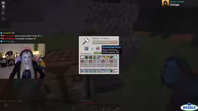 12:56:51Es kommt zu einer Verwechslung, als über Nebelnik gesprochen wird, während Nik Beats im Call ist, was zu Verwirrung führt. Nach der Klärung wird sich auf die Verzauberung von Gegenständen konzentriert. Es wird über die besten Verzauberungen für Helme, Schwerter und Schuhe diskutiert, darunter Protection, Respiration, Aqua Affinity, Unbreaking und Mending. Eine Website wird genutzt, um die günstigsten Verzauberungen zu finden. Der Helm wird erfolgreich mit Protection 4, Respiration 3, Aqua Affinity 3, Unbreaking 3 und Mending verzaubert und erhält den Namen "Bloodcrone". Es wird auch über die Notwendigkeit gesprochen, mehr Essen zu sammeln und das Inventar weiter zu sortieren, da die Ressourcen knapp werden. Die Streamer sind trotz der langen Stream-Dauer nicht müde und planen, am nächsten Tag früher online zu sein, um die fehlenden Ressourcen zu farmen.