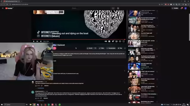 00:31:32Der Fokus des Streams verschiebt sich auf die Diskussion über die sogenannte 'Yachting'-Kultur in Hollywood und der High-Society. Die Streamerin erläutert, dass es sich dabei um ein System handelt, in dem reiche und mächtige Personen Models, Influencer und Prominente auf Luxusyachten einladen, um sie für Kontakte und Unterhaltung zu bezahlen. Sie erzählt von eigenen, abgelehnten Einladungen und analysiert Berichte und Blind Items, die nahelegen, dass diese Praxis weit verbreitet ist und oft in eine Grauzone zwischen Partybegleitung und Prostitution übergeht.