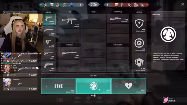 00:26:52Die Streamerin erklärt die Situation und erwähnt, dass es ihr gut geht. Sie öffnet Vaylo, hat aber technische Probleme damit, da es über zwei Bildschirme geöffnet wird. Sie vermutet, dass es an der Firma liegen könnte. Nach anfänglichen Schwierigkeiten spielt sie Valorant mit Sam und anderen. Es gibt Probleme mit dem Sound, der sich wie ein Roboter anhört, aber diese werden behoben. Sie spielt Sage und betont, dass sie keinen Wert auf Revive oder Heal legt, sondern alles für sich selbst nutzt. Es wird überlegt, ein eigenes Among Us zu spielen, aber die Streamerin gibt zu, dass sie nicht gut im Lügen ist. Sie erzählt von einem Gespräch mit Danny, der ihr rät, als Crewmate manipulativer zu sein. Während des Valorant-Gameplays gibt es lustige Kommentare und Interaktionen mit den Mitspielern. Sie spricht über ihr Sternzeichen Steinbock und diskutiert mit dem Chat über die Eigenschaften verschiedener Sternzeichen.