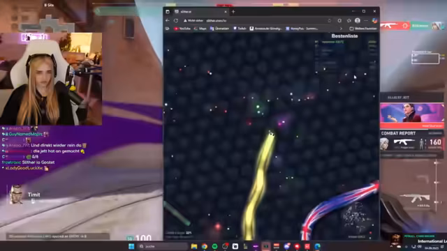 03:15:13Der Zug der Streamerin nach Berlin fällt aus, was sie zunächst freut, da sie dadurch weiter spielen könnte. Allerdings stellt sich heraus, dass sie eine Kooperation in Berlin hat, was die Situation kompliziert macht. Sie muss nun wahrscheinlich mit dem Auto oder Flixbus von Düsseldorf nach Berlin fahren. Es wird erwähnt, dass die Streamerin bald nach Düsseldorf ziehen wird, wo sie direkt auf der Kö wohnt. Nach dem Spiel möchte die Streamerin entweder Reactions machen oder einen Leak zeigen. Sie entscheidet sich gegen zwei Runden Valorant und überlässt die Entscheidung dem Chat. Es wird überlegt, ob man noch eine Runde zu Ende spielen soll. Die Streamerin erwähnt, dass ihre Aura zu stark sei, weshalb ihr Internet ausgefallen sei. Sie schlägt vor, noch eine Runde zu spielen und danach Reactions zu machen. Es wird erwähnt, dass die Streamerin früher Ascendant 2 in Valorant war, das Spiel aber lange nicht mehr gespielt hat.