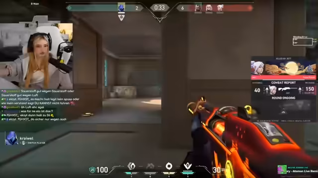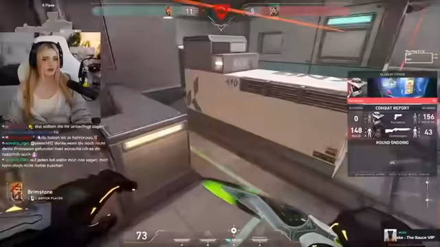 05:31:14Die Aufmerksamkeit richtet sich wieder auf Valorant, wobei der Streamer Fehler und Frustration zeigt. Er stirbt durch einen Operator und ist mit seiner eigenen Leistung unzufollkommen, besonders auf der Map 'Garage'. Er beschwert sich über den gegnerischen Spieler, der sein Ziel nicht killt, und unternimmt einen Revive-Versuch, der fehlschlägt, was ihn wütend macht. Sein Team spielt einen 4 gegen 5, was die Situation zusätzlich erschwert.