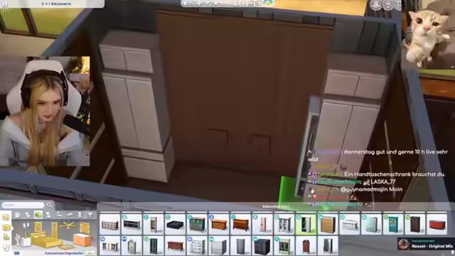 09:26:15Die Fokussierung verlagert sich stark auf die Innenraumgestaltung. Die Streamerin wünscht sich einen Mischstil aus modern und alt. Sie überlegt über Berufe der虚构en Bewohner, wie eine Bänkerin oder eine Psychologin, um das Konzept zu vertiefen. Ein Teil des Wohnzimmers soll als "Zen-Bereich" gestaltet werden, während andere Bereiche wie eine kleine Bar oder ein Esszimmer geplant werden. Dabei stößt sie auf technische Limitationen des Spiels, da viele Möbel und Deko-Elemente nicht platzierbar oder nicht kombinierbar sind.