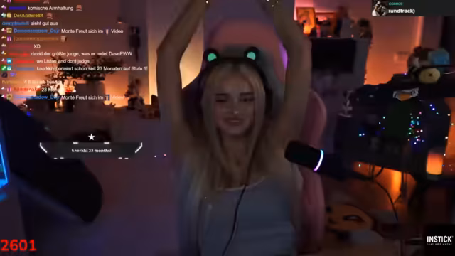 05:40:33Die Streamerin erschafft eine imaginäre Club-Atmosphäre, in der sie als DJ fungiert und die Zuschauer als Gäste. Es werden zahlreiche Lieder verschiedener Genres und Epochen gespielt, von Pop über Dance bis zu Hip-Hop. Sie stellt sich vor, wie sich die Zuschauer zu den Songs bewegen würden und wünscht sich mehr Hintergrundgeräusche wie eine jubelnde Menge. Die Zuschauer werden aktiv in die Musikauswahl einbezogen und aufgefordert, Wünsche zu äußern. Die Spannung steigt, als ein 'Ultimativ-Song' angekündigt wird und die Party ihren Höhepunkt erreicht.