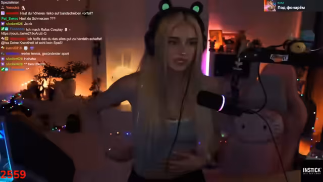 00:54:02Die Streamerin berichtet über ihre diagnostizierte Skoliose von 20 Grad, welche sie bereits mit 13 Jahren bei einem Orthopäden feststellen ließ. Zur Behandlung absolvierte sie mehrmals eine mehrwöchige Reha in der Bad Sobernheimer Klinik, wo sie unter anderem ein Korsett tragen musste. Sie erklärt, dass das Korsett nur während Wachstumsschüben wirksam ist und bei ihr keine Besserung erzielte, da sie bereits mit 13 ihre Endgröße erreicht hatte.