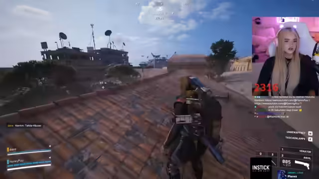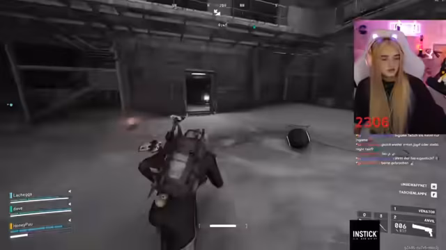 01:57:29Die Streamerin spielt das Spiel Arc Raiders und kooperiert mit Zuschauern in einer 'friendly Lobby'. Es kommt zu einem hektischen Feuergefecht auf der Map, bei dem sie von Gegner angegriffen wird. Nachdem ihr Teamkamerad ausgeschaltet wurde, versucht sie, ihn zu retten, wird aber selbst in die Zange genommen. Das Spiel endet für ihr Team abrupt, als ein Gegner sie mit einer Schrotflinte eliminiert. Danach starten sie eine Runde 'Entenjagd'.