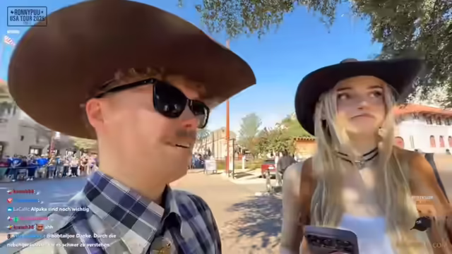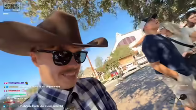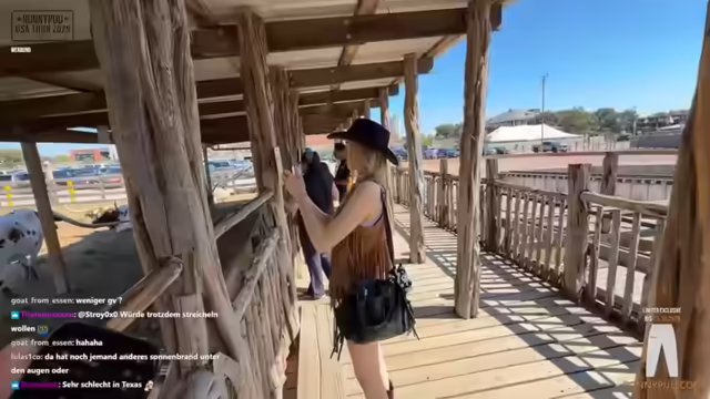 00:54:53Der Stream erhält einen Raid von 'Knirps', was zu einer Begrüßung der neuen Zuschauer führt. Die Ankunft in den Stockyards wird erneut betont, und die bevorstehende 'Kettle Walk'-Parade um 11:30 Uhr wird angekündigt. Die Longhorn-Kühe werden durch die Main Street ziehen, und die Zuschauer suchen bereits Schattenplätze. Es wird über die Art der Cowboyhüte gesprochen, wobei Strohhüte als sommerlicher, aber schwieriger sauber zu halten beschrieben werden. Die Gruppe positioniert sich strategisch in einer Kurve, um eine gute Sicht auf den Umzug zu haben. Es wird über den Kauf von Cowboy-Hemden und die Notwendigkeit langer Jeans diskutiert, obwohl der Streamer seine kurze Hose verteidigt. Die Vorfreude auf das Spektakel und das Eintauchen in die Western-Kultur ist deutlich spürbar.
