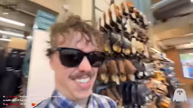 03:34:20Die Streamerin teilt ihre Begeisterung für Halloween und den damit verbundenen Vibe, wie Kürbisausstellungen und gruselige Dekorationen. Parallel dazu wird die Erkundung von Western-Stores fortgesetzt, wobei die Suche nach einer passenden Wrangler Jeans und Cowboy-Stiefeln im Vordergrund steht. Es werden verschiedene Marken wie Ariat und Kimes Ranch erwähnt. Die Preise für Cowboy-Stiefel variieren stark, von 240 bis 750 Dollar, wobei auch exotische Materialien wie Straußenleder zur Sprache kommen. Die Streamerin entwickelt eine Vorliebe für Cowboy-Hüte und schätzt den einzigartigen Stil.