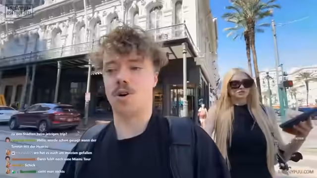 00:40:56Der Stream zeigt viele Interaktionen mit Passanten und Touristen im French Quarter. Ein Deutscher unterhält sich mit der Streamer über die USA-Reise und gibt Einblicke in seine Eindrücke. Auch Gespräche mit Einheimischen über Lebensmittel und Touristenattraktionen finden statt. Die Streamer sind stets bemüht, mit Menschen ins Gespräch zu kommen und ihre Erfahrungen teilen.