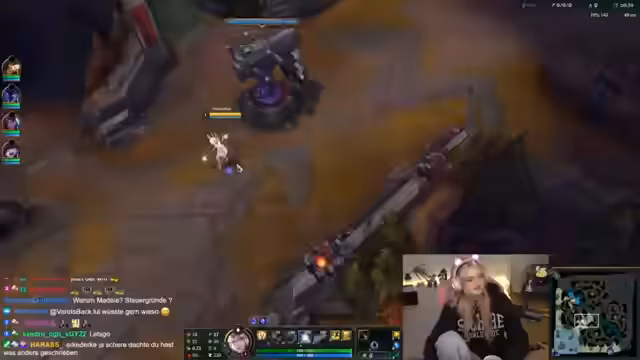 05:22:33Honeypuu kämpft mit technischen Problemen während des Streams, insbesondere mit dem Sound des Spiels, der für die Zuschauer nicht zu hören ist. Sie versucht, die Einstellungen anzupassen, während sie gleichzeitig das Spiel spielt, was zu Frustration führt. Sie spricht über ihre Vorliebe für den Charakter Lux in League of Legends und probiert ein neues Bild von Lux aus, das ihr von einem Zuschauer geschickt wurde. Während des Spiels äußert sie sich mehrfach frustriert über ihre eigene Leistung und die Fehler, die sie macht. Sie diskutiert mit dem Chat über die richtige Spielweise und Strategien, während sie versucht, das Spiel zu gewinnen. Sie gesteht ein, dass sie sich von den Kommentaren im Chat beeinflussen lässt und versucht, die Erwartungen der Zuschauer zu erfüllen. Trotz der Schwierigkeiten und der frustrierenden Spielsituation behält sie ihren Humor und versucht, positiv zu bleiben. Sie spricht auch kurz über toxisches Verhalten im Spiel und lehnt es ab, sich daran zu beteiligen.