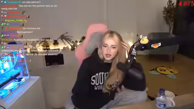 04:21:26Die Streamerin erzählt eine peinliche Geschichte aus ihrer Jugend, als sie versuchte, Wasser zu sparen, weil ihre Familie nicht viel Geld hatte. Sie hatte gehört, dass das Spülen der Toilette viel Wasser verbraucht und teuer sei, und versuchte daher, weniger zu spülen, wenn sie nur pinkeln war. Ihr Vater forderte sie jedoch auf, immer zu spülen. Sie schämt sich für diese Episode und wird rot, obwohl man es wegen ihres Make-ups kaum sieht. Sie reflektiert darüber, dass sie damals im Teenageralter war und es nicht besser wusste. Trotz ihres kindischen Verhaltens mit 25 Jahren findet sie es wichtig, sich einen Teil ihrer Kindlichkeit zu bewahren und Spaß am Leben zu haben. Sie erwähnt, dass sie oft widersprüchliche Rückmeldungen erhält, da sie einerseits als sehr reif und andererseits als kindisch wahrgenommen wird. Sie sieht sich selbst als Mischung aus beidem, abhängig von der jeweiligen Situation. Abschließend betont sie, dass es in Ordnung ist, sich nicht immer wie ein Erwachsener zu verhalten und dass es wichtig ist, auch im Erwachsenenalter Spaß zu haben.
