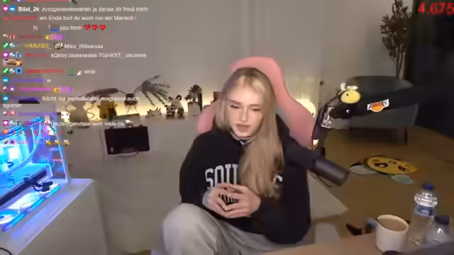 04:52:21Die Streamerin betont, dass sie sich nicht alles gefallen lassen möchte und dass sie sich nicht wie ein Hund behandeln lassen will, obwohl sie in Beziehungen dazu neigt, hinterherzulaufen. Sie spricht über die Bedeutung von Ehrlichkeit und Authentizität und dass sie nicht hinter einer Meinung stehen kann, die nicht ihre eigene ist. Sie erzählt von einem Vorfall auf der Gamescom, bei dem sie aufgrund von Müdigkeit ein seltsames Aussehen hatte. Sie spricht über die Bedeutung von persönlichen Grenzen und dass sie sich nicht von anderen ausnutzen lassen möchte. Sie erzählt, dass sie von Leuten gehört hat, sie solle sich auf ihr Vision Board schreiben, dass sie sich Dinge nicht zu Herzen nehmen soll, weil sie sehr emotional ist. Positive und negative Dinge bewegen sie extrem. Sie erzählt von der Freude, als sie als eine von drei Personen im deutschsprachigen Raum eine Razor Maus von Faker bekommen hat. Sie vergleicht das Gefühl mit Sex und hatte Tränen in den Augen. Sie erzählt die Geschichte, wie die Dame von Razor, die sie übernommen hat, sich für sie eingesetzt hat, um eine der Mäuse zu bekommen. Sie wollte die Dame einfach küssen. Sie erzählt von einem Geburtstag, an dem sie alleine war und gestreamt hat. Die lieben Nachrichten von den Zuschauern haben sie sehr berührt und sie hatte Pipi in den Augen, als sie den Muffin ausgepustet hat.