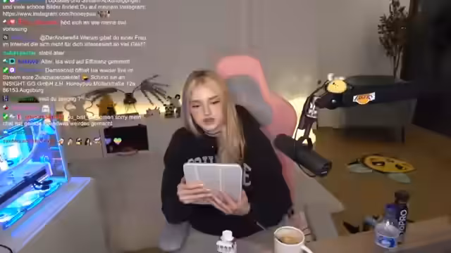 00:02:32Honeypuu berichtet von ihrem Aufenthalt auf Madeira und den damit verbundenen Herausforderungen. Sie leidet unter starkem Jetlag und ist müde. Zudem gibt es technische Schwierigkeiten mit ihrer Kamera, die kurz vor dem Stream den Geist aufgegeben hat, weshalb sie auf die alte Kamera zurückgreifen muss. Sie erwähnt, dass sie sich aufgrund eines Hackerangriffs überall neu einloggen musste und ihre Passwörter sowie E-Mails geändert hat. Trotz dieser Umstände freut sie sich auf den Stream und kündigt an, dass sie später noch über ein bestimmtes Thema sprechen wird. Vorab möchte sie jedoch entspannt plaudern und Kaffee trinken, während sie Tabletten gegen Dehydration einnimmt. Sie bedankt sich bei ihren Zuschauern für ihre Unterstützung und freut sich über die positiven Kommentare, insbesondere über das Minecraft-Herz, das zu ihrem Pullover passt. Abschließend erwähnt sie, dass sie League of Legends spielen wird und gestern aufgrund eines hochgeladenen Videos nicht live gehen wollte.