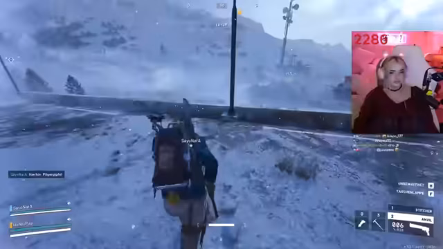 04:25:51Das Streamer-Team konzentriert sich auf das 'Blue Gate Cold Snap' Event. Sie erkunden ein Gebäude mit einer Luke im Boden, stoßen auf andere Spieler, interagieren mit ihnen, schießen aber nicht zuerst. Nach einem fehlgeschlagenen Kampf, bei dem ein Teammitglied getötet wird, wechselt das Ziel zum PvP. Die Musik und die Atmosphäre, wie das Abspielen von Weihnachtsliedern, werden zur Unterhaltung genutzt.