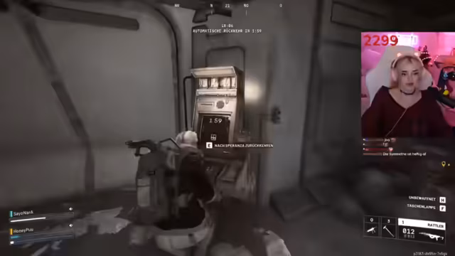 06:27:23Der Stream startet mit einem hektischen Feuergefecht. Der Streamer und sein Mitspieler sind massiv unter Beschuss, beschreiben eine "sehr, sehr knappe Nummer" und einen knappen Ausweg. Die Lage ist angespannt, ein gegnerisches Team wird als Penner bezeichnet, und man überlebt nur knapp. Gefunden werden zwei Epische Items und eine Blaupause, was den Drop als erfolgreich, aber auch gefährlich macht.