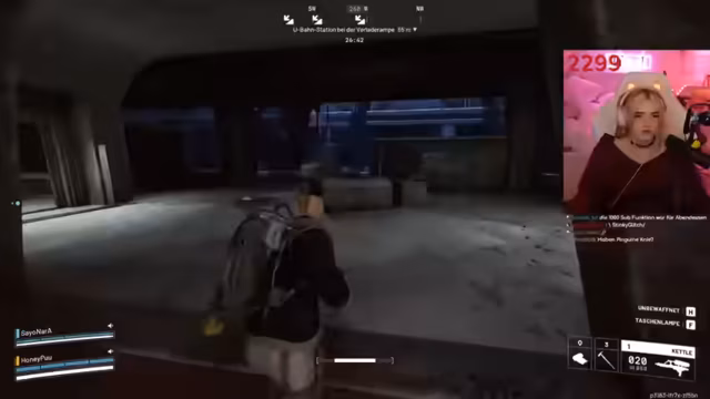 01:42:03Im Spiel kommt es zu einem heftigen Kampf, bei dem der Streamer Gegner in einem Gebäude aufspürt. Er tötet einen Gegner direkt, verliert aber den zweiten aus den Augen, was zu großer Verwirrung und Frustration führt. Trotzdem beschließt er, den Einsatz fortzusetzen, und versucht mit vollem Inventar das Extrakt zu erreichen. Ein Verfolger verwickelt ihn in ein letztes Gefecht, dem er mit Glück knapp entkommt.