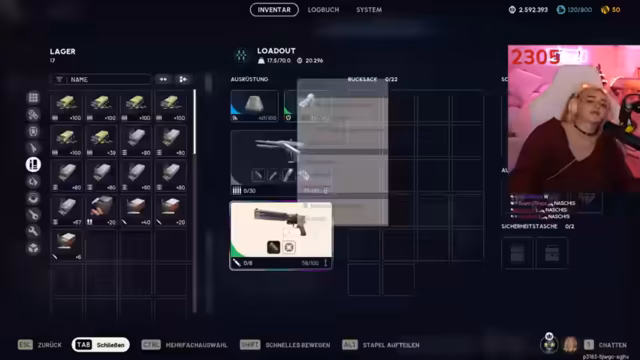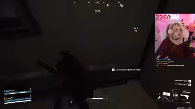 03:03:05Ein wiederkehrendes Problem mit der defekten S-Taste der 300-Euro-Tastatur wird angesprochen, wobei der Streamer auf Ersatzteile verweist. Die Orientierung auf der Map gestaltet sich schwierig, besonders im Krankenhaus- und Raumfahrtbüro-Bereich. Die Strategie wechselt, als ein Teammitglied gefangen genommen wird, und die Gruppe beschließt, sich aus der Gefahrenzone zurückzuziehen und Loot-Verkäufe durchzuführen.