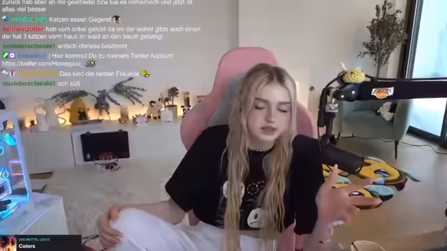 00:01:07Die Streamerin berichtet, dass sie versehentlich nach dem Make-up einschlafen ist, was in einen zwei Stunden langen Mittagsschlaf mündete. Nach dem Aufstehen hat sie sich sofort ans Setup gesetzt, um ihren Stream zu beginnen. Sie erwähnt, dass sie wegen mehrerer Telefonate zu Steuern und ihrem Reisepass kaum geschlafen hat und Rückenschmerzen verspürt.