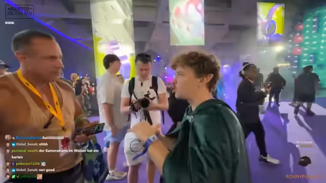 06:35:52Der Streamer berichtet von seinen Erlebnissen bei einer Twitch-Convention in Amerika. Er erzählt von einer spontanen Einladung zu einem Event mit mysteriösen Aktivitäten wie Jenga-ähnlichen Spielen und DDR-Matten. Dabei lernt er interessante Menschen wie 'Bash Bunny' kennen und stellt fest, dass er 'Ronny Burger' heißt. Auch die Organisation des Events wird kritisch hinterfragt, da der Streamer keine genauen Informationen darüber hat, was dort passieren soll.