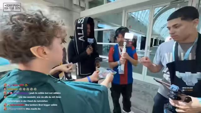 06:51:41Ein Hauptthema des Streams ist das Testen verschiedener deutscher Influencer-Produkte, die der Streamer in Amerika verteilt. Dazu gehören Knoppers, Paul-Berger-Limo und Gunnergy. Es wird bedauert, dass nicht alle bekannten deutschen Streamer wie Bibi No Money getroffen wurden. Der Streamer erklärt, dass er diese Produkte lieber an influencers gibt, die er selbst mag, anstatt sie zufällig zu verteilen. Dabei kommt es zu unterhaltsamen Reaktionen der Tester.
