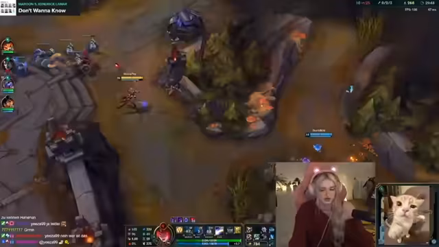 03:10:00Die Streamerin spricht über ihre bevorstehende Reise nach Korea und ihre Pläne, sich dort die Haare färben zu lassen. Sie erwähnt, dass sie derzeit noch zu sehr von der europäischen Warteschlange in League of Legends abhängig ist und den Rang nicht allzu ernst nimmt, obwohl sie sich trotzdem ärgert. Es wird angekündigt, dass sie bald ihre Armhaare im Stream waxen wird. Sie berichtet über ein League of Legends Spiel, in dem sie Schwierigkeiten hat und oft Fehler macht, aber auch riskant spielt. Sie erwähnt, dass sie müde ist und zu viele Fehler gemacht hat. Es wird über die Teamzusammensetzung und die Strategien im Spiel diskutiert. Die Streamerin spricht über ihre Vorliebe für Fischstäbchen mit Lachsfülle und Saraccio-Soße anstelle von Ketchup. Sie vergleicht Cola Light und Cola Zero und diskutiert den Zuckergehalt. Es wird über einen Mitspieler gesprochen, der ihren Champion Lux gebannt hat, und sie äußert ihren Unmut darüber. Sie spricht über ihre frühere Stärke mit Nidalee auf der Mitte und bedauert, dass sie diese nicht präsentieren konnte. Die Streamerin nimmt ihre Biotin-Tabletten für Nägel und Haare und ihre Antibabypille. Sie äußert sich über die Bedeutung positiver Mentalität im Spiel und bedankt sich bei ihren Zuschauern für die Unterstützung.