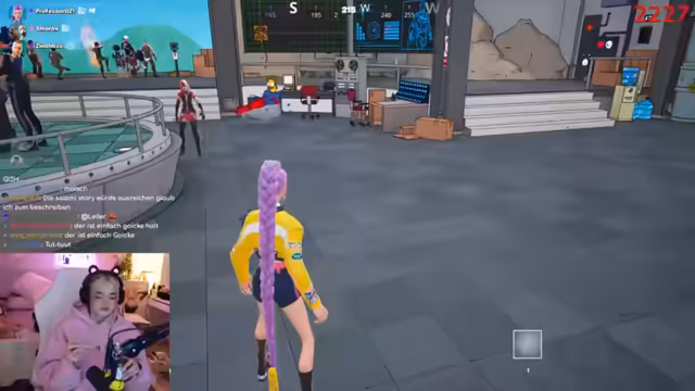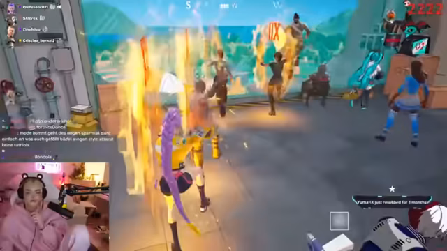 00:53:38Die Streamerin begrüßt Schlo zu einem gemeinsamen Fortnite-Stream, bei dem sie ein Event verfolgen wollen. Schlo beschreibt seine Fortnite-Fähigkeiten im Bau-Modus als '0,1 von 10' und ohne Bauen als '2 von 10', während die Streamerin sich selbst als '5 von 10' einschätzt. Während sie auf den Start des Events warten, entspinnt sich eine humorvolle Diskussion über Anime. Die Streamerin gesteht, dass sie entgegen ihrer früheren Ablehnung nun selbst Anime schaut und sogar ein Crunchyroll Premium Abo besitzt. Sie verrät, dass sie 'Solo Leveling' guckt, nachdem Schlo zwei erfolglose Rateversuche hatte. Beide amüsieren sich über die oft übertriebene Reaktion von Anime-Fans, wenn jemand sagt, er möge keine Animes, und die Streamerin gibt zu, dass sie es liebt, Leute deswegen zu 'flamen'.
