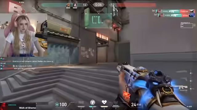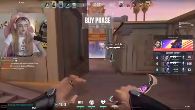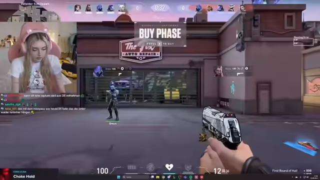 01:36:55Die Streamerin spielt mehrere Runden des Spiels Valorant. Ihr Team befindet sich im Platin-Ranking. Während des Spiels äußert sie sich über die Leistungsstärke ihrer Mitspieler, bemängelt Fehler und teilt ihre Frustration über das Gameplay. Sie wechselt mehrmals den Charakter, hofft auf einen Aufstieg im Ranking (Double Up-Rank) und diskutiert mit dem Chat über die Server-Verbindung. Der Abschnitt zeigt ihre taktische Einschätzung im Spiel und ihre emotionalen Reaktionen auf Spielverläufe und Teamkommunikation.