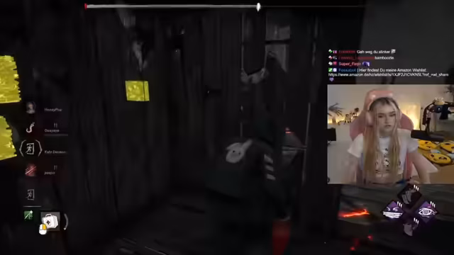 06:55:17Im weiteren Spielverlauf ist die Kommunikation zwischen den Spielern entscheidend. Der Streamer versucht, einen Mitspieler zu retten und fordert diesen auf, sich zu verstecken. Er übernimmt die Rolle der 'Ablenkung' und führt den Killer weg. Ein Mitspieler wird als 'warmhaken' beschrieben, was bedeutet, dass er gefangen genommen wurde. Der Streamer stellt fest, dass er früher oder später sterben wird. Es gibt eine Missverständnis, bei dem ein Spieler versehentlich eine Salve startet und so das Team verrät.