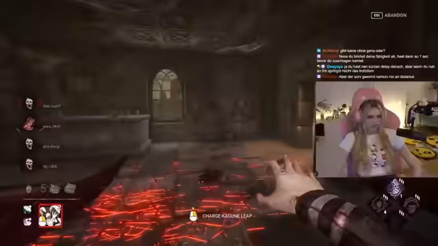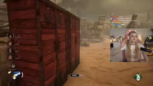 06:49:46Im Spiel wird aktiv auf einen 'Pein-Résiment' gejagt, der sich möglicherweise zu einem anderen Spieler bewegt. Der Streamer beobachtet die Bewegungen des Killers und weist seinen Mitspieler an, ruhig zu bleiben, während er den Killer auf sich zieht. Die speziellen Eigenschaften der Map werden erörtert, wie zum Beispiel der 'chilligste Gent', den man machen kann. Ein Mitstreiter ist der Meinung, der Killer könne nur von einer Seite kommen, was die Situation etwas entschärft. Auch die Fähigkeit 'Deliverance' wird erwähnt, die es ermöglicht, vom Atem zu springen.