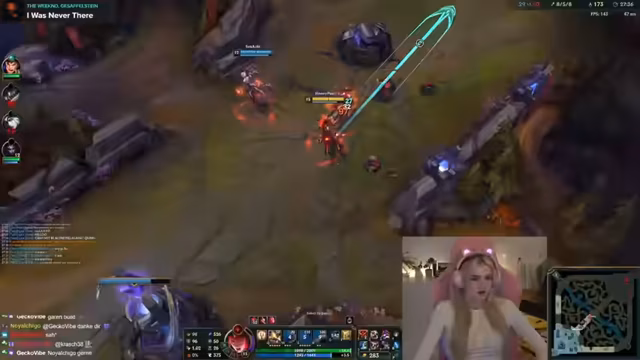 09:05:16Die Streamerin pusht raus und kommentiert das Spielgeschehen. Sie lobt einen Ekko auf der Botlane und freut sich über zwei Plates. Sie überdenkt ihre frühere Einschätzung eines Illy-Supports. Sie kommentiert das Verhalten eines Spielers, der sich selbst umgebracht hat. Die Streamerin kritisiert den Ash-Pick und vermutet, dass die Spielerin einfach Sims in League spielt. Sie lobt die Elise und fragt nach Meinungen. Sie kommentiert, dass sie in dem Moment, wo er das Schild macht, nicht die Ult zünden soll. Sie freut sich über zwei Drakes und hat Angst. Die Streamerin ist bereit, auf der Midlane zu fighten. Sie kommentiert einen Skin und bezeichnet ihn als Pay-to-Win-Skin. Sie hat keine Mana mehr und muss B gehen. Sie kommentiert, dass sie mit dem Haus fast fertig ist. Die Streamerin hat Sims zeitgleich auf und hat eine Nachricht von Eli übersehen. Sie versucht, die Situation zu klären und ist verwirrt.