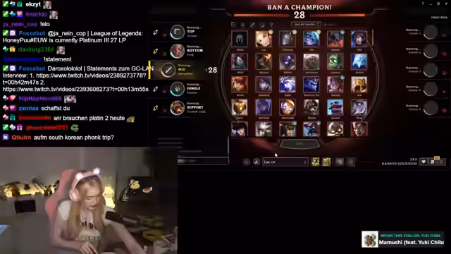 07:53:47Am Ende der Session fasst der Streamer den Tag zusammen. Er hatte zwei gute Siege und eine sehr unglückliche Niederlage. Er zeigt Frustration über die "Champion-Rollerei" in der Champ-Select und betont sein Ziel, heute den Aufstieg zu Platin 2 zu erreichen, um eine "Gewürzgucke" zu sichern.