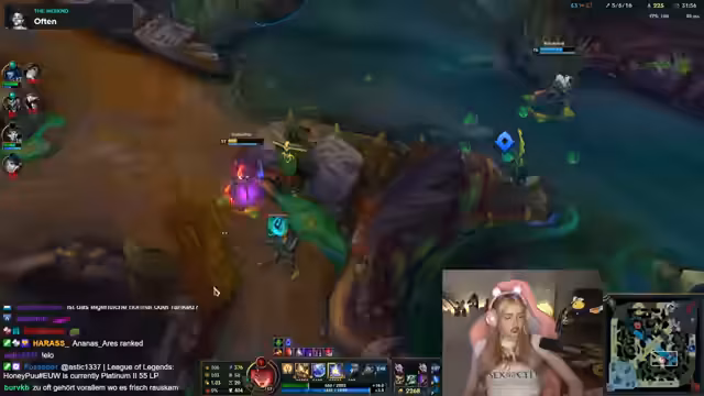 08:04:17Die persönliche Ranking-Ambition steht im Mittelpunkt. Der Wunsch, Emerald zu erreichen und eventuell sogar Master zu werden, wird mehrmals geäußert, was zeigt, wie wichtig der spielerische Fortschritt ist. Die aktuelle Platzierung in Platin führt zu Frust, besonders wenn man gegen vermeintlich stärkere Gegner wie Challenger-Spieler verliert. Die Gründe für Niederlagen liegen oft in eigenen Fehlern wie Greediness, zu wenig Mana-Management oder der Neigung, zu lange auf der Map zu bleiben, statt sich zurückzuziehen.
